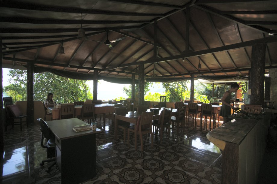 ブナケン島は一部の高級リゾートを除きダイブショップと併設の宿泊施設が有り基本フルボード(3食付) メールで問合せパノラマを選択し予約する。 部屋は木造バンガロータイプで空調はファン、水シャワー。 |