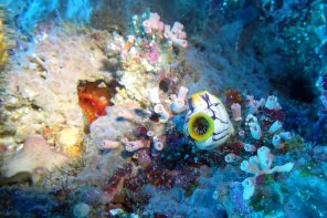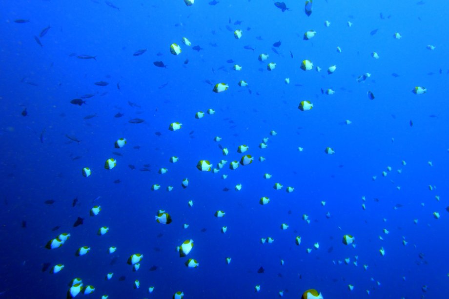 | 先回と同じくカスミチョウチョウウオの群が奇麗なのと、今回はカメがやたら多く1ダイブで20匹以上見られ小さな個体も 多く移動中浅い所を泳ぐところをボートからも見られ保護育成が順調の様。 |