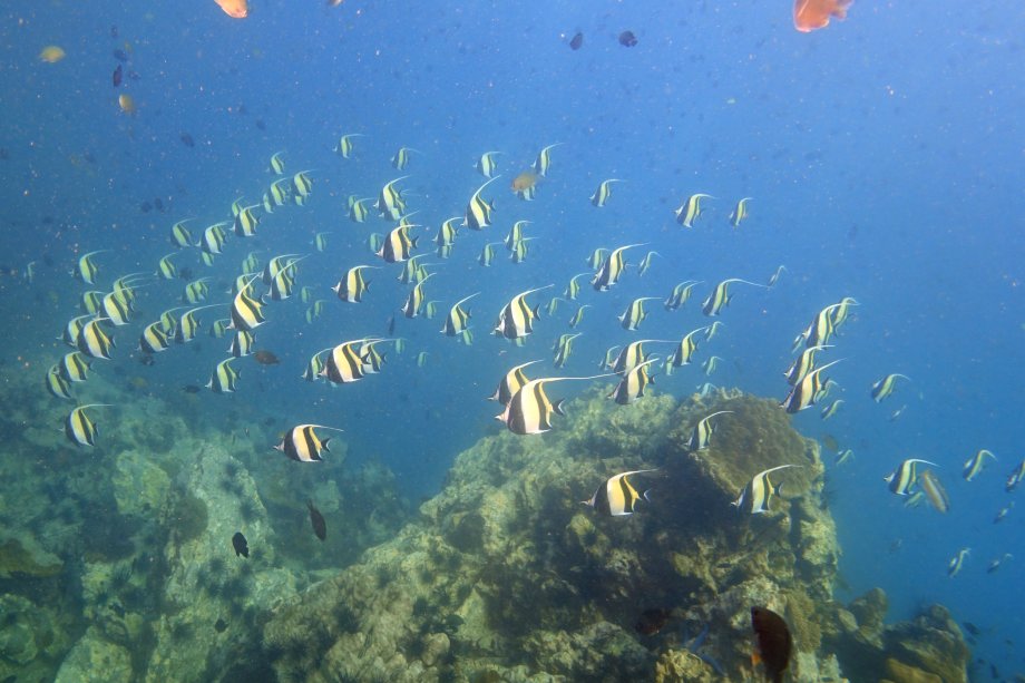 | 2日目 | ビダノックでは何時もの黄色い魚の大きな群れ、シャークは海が青では無く透明度も悪くはぐれて別のグループとエクジット | ||