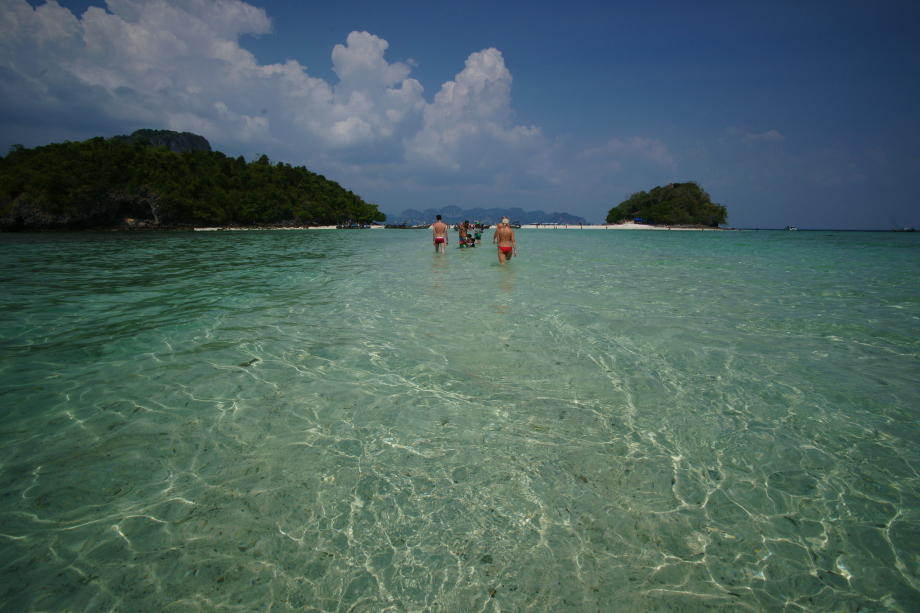 クラビ周辺を廻る日帰りツアーを予約、まず朝ホテルをピックアップしプーケットタウンのラサダ港へ其処から大型船で クラビへ向かうクラビ沖でツアー別にそれぞれのボートに乗り換えアオナンビーチで1時間位過し次にスピードボートで チキン島、タップ島、モー島、ポダ島などを巡り途中ビーチに上陸、スノーケリングなどが有る |