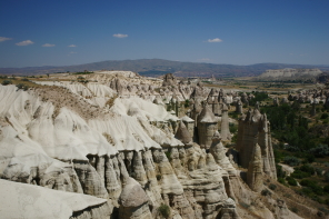 | 行程 | 先ずウチヒサルに行きその後ギョレメ屋外博物館に行き、次にアヴァノスに行き陶器の工房見学実演も有り ろくろを足で回していた、日本語担当の営業が付て来る、中国語担当も居た様。 昼食はツアー客専用の巨大な レストラン、ミニバンや大型バスなど多数の車がいた、昼食後は絨毯の工房へ絨毯を空中で水平に回転させ 着地すると色合いが変わるショーの様な物が有った、その後ラブバレー、イマジネーション、パシャバーと回る。 |