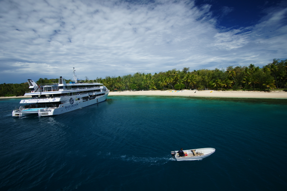 ナンディでの最後の1日はサウス・シー・クルーゼズ社のヤサワ・アイランズ・エクスプローラーを日本で予約済み これは元々サウスシー島への日帰りツアー客とその他の島への送迎客用の物だが、其の船に出航から帰港迄 終日乗船する、島を順番に回るので島間の移動には便利(例えばモルディヴではマーレを経由しないと移動できない) 朝から雨模様だったがママヌザ諸島を抜けた頃雨があがりヤサワ諸島辺りからは青空も出てきた。 |
