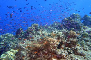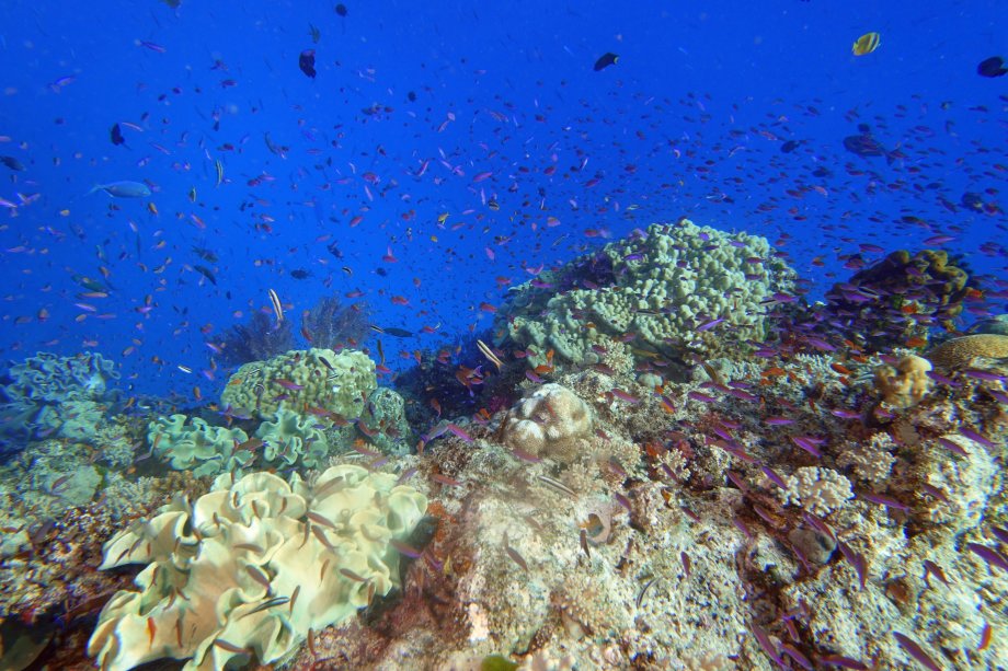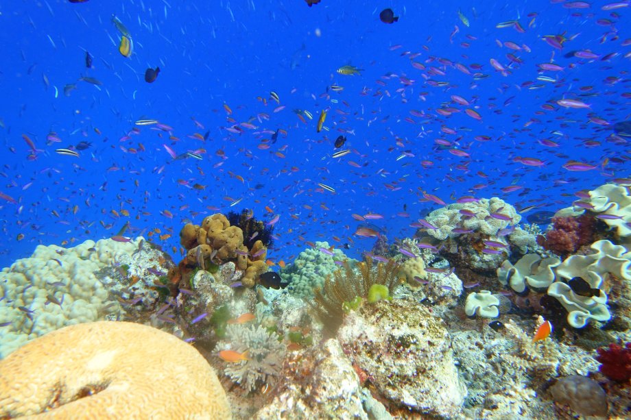 | ナメナは海洋保護区と言うだけ有り、サブサブ周辺にも増してサンゴが超綺麗、カラフルでステンドグラスのように鮮やか。 | ||