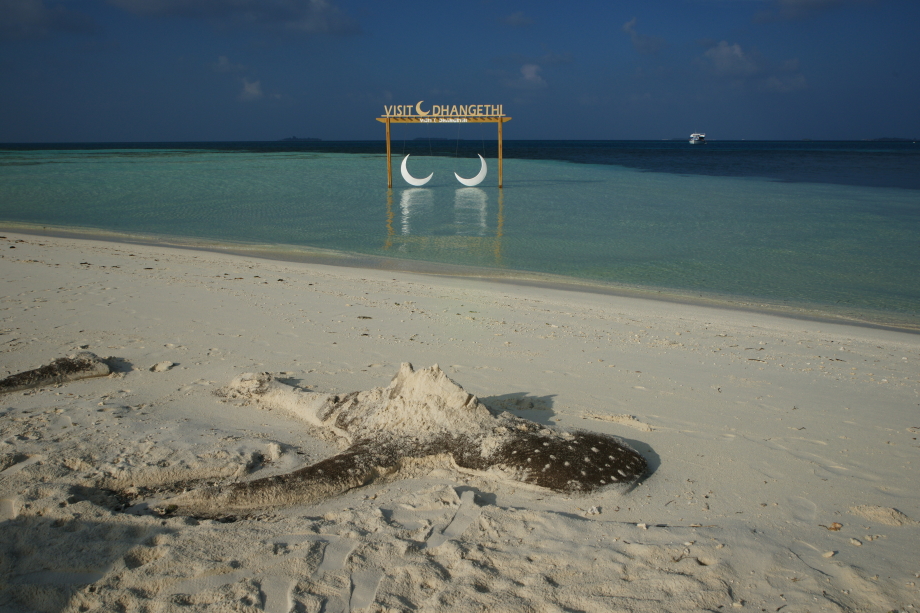 | ダンゲティ島 | 南アリ環礁の東側に位置しヴィラメンドゥ、ランヴェリの南側に有り更に南にはディグラ島。 徒歩30分位で1周出来る位の小さな島で、マーレから人や物資を運ぶ船の入る港と反対側に 小さなボートを付けるジェティが有る。 ホテルは小規模の物が10件くらい土産物屋、売店等も有る。 |