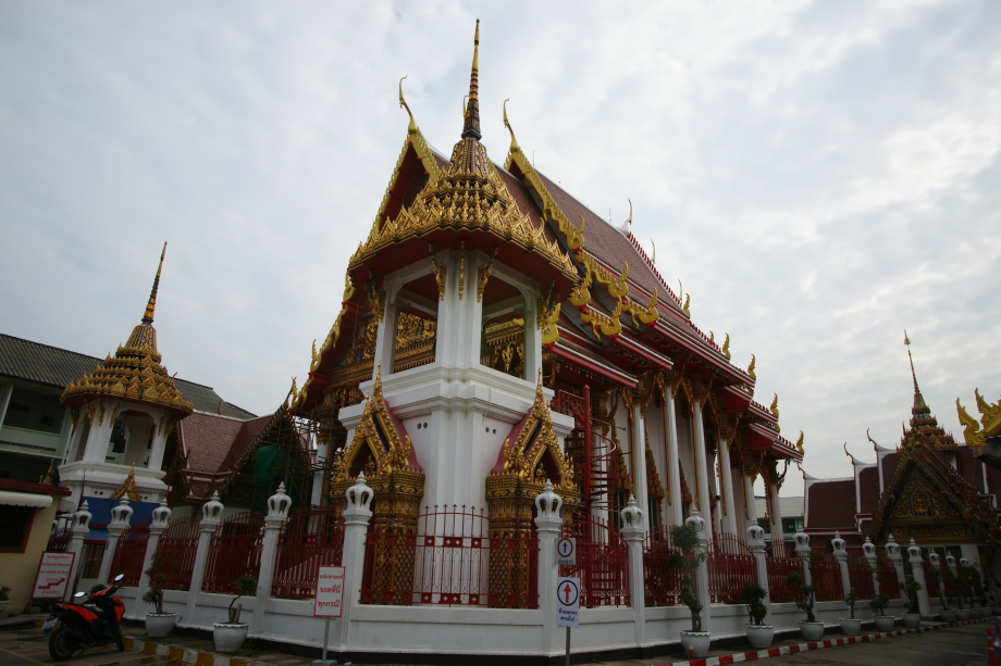 | チャンタブリ | ホテルにチェックイン後カテドラルに向かう、途中綺麗なお寺が有り後日地図で調べたらタクシン・マハラト寺院 撮影中に地図を落としてしまい記憶を元に歩いたが道に迷いロビンソンに辿り着き其処でタクシー呼んで貰い 何とか辿り着いたが内部に入れるのは午後3時迄との表示で、間に合わなかったが実際は開いていて入れた。 |