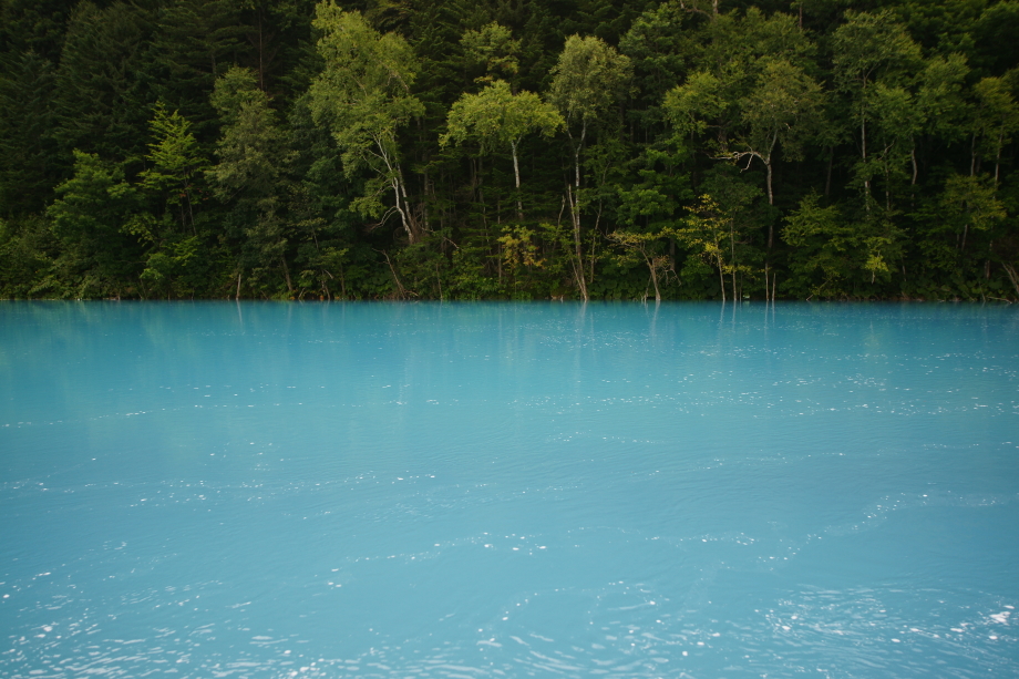 | 白金 青い池 | 1箇所寄り道をし約1時間で青い池に辿り着く、曇りだがとても綺麗、美瑛川は街中でも青みがかっている。 | ||