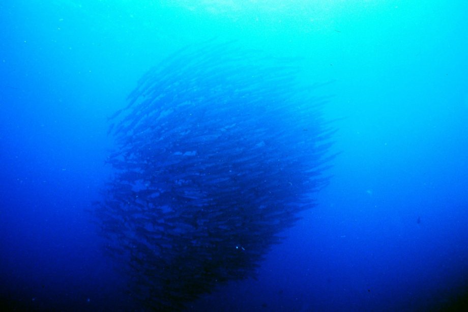| 2日目バリガサグのブラックフォレストでブラックフィンバラクーダの大きな群れが見れた。 バンカボートにはオープンウオーター講習生が同乗していてOW講習中に凄い物が見れて羨ましい、 自分のOW講習は冷たい7月の伊豆の海で寒さをこらえ単にスキルだけを会得していた事を思い出した |