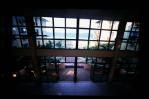 | ドーニの船首に有る綺麗な飾り其の後は余り派手な物は見かけない。 朝日、東側に有るココア・リゾート付近から昇る | ||