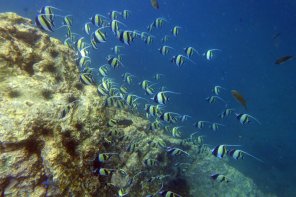 | 2日目 | ビダノックでは何時もの黄色い魚の大きな群れ、シャークは海が青では無く透明度も悪くはぐれて別のグループとエクジット | ||